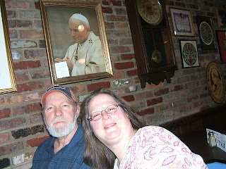 Saturday, Ron and I had an adventure day. We started our day heading down to Barberton Ohio, Ron's hometown, to meet up with two of my favorite people! Ron's cousin Tom and Tom's wife Margie. I've said it before and I'll say it again - these people are a party looking to happen! We met up at Hopocan Gardens, one of the chicken houses in Barberton. Here is Tom and Ron and then a reluctant Margie! Thanks for finally relenting to the picture!