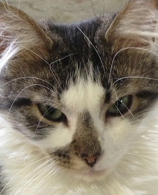 A surprising thing I have learned about cats is that they all have their own distinct personalities! Maggie is my quiet one. The other three may be laying together, but more than likely Maggie will be in a quiet corner on her own upstairs. Maggie is very vocal when she wants to be, and she will "chirp" her little heart out telling me all about her day. When she wants attention, she wants ALL of my attention! Both of my hands need to be ON her, rubbing her fur, scratching her chin, whatever she wants. Both hands! She has the softest fur, I could pet her all day long! She is a beautiful loving cat.